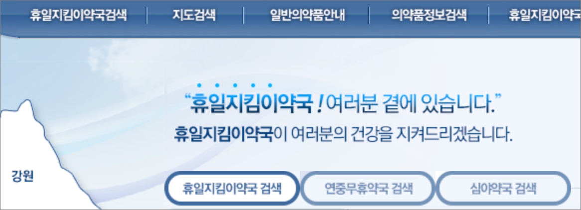 구글이나 네이버에서 휴일지킴이약국으로 검색 후 해당 웹사이트에 접속합니다. 그럼 지도 위치나 날짜를 선택해서 내 주변 영업 중인 약국 찾기를 해볼 수 있으며 공휴일이나 주말 토요일/일요일 약국 찾기뿐만 아니라 심야 야간약국 찾기 할 때도 유용하게 이용해 볼 수 있을 겁니다. 그리고 본인 휴대폰에서 위치 GPS를 활용해서도 약국 찾기가 가능합니다. 구글 플레이 스토어에서 응급의료정보제공 앱 이름을 검색해서 설치하시면 됩니다. 보건복지부에서 서비스하는 의료정보 앱으로 다방면으로 활용해 볼 수 있을 겁니다.