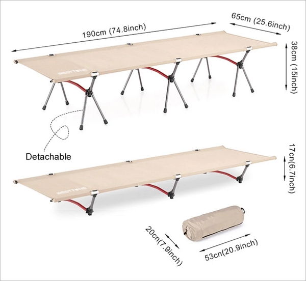내구성 측면에서도 이 간이 침대는 만족감을 줄 수 있을 건데요. 고강도 7075 알루미늄 합금으로 제작된 프레임은 매우 튼튼하고, 최대 264 파운드(약 120kg)의 하중을 견딜 수 있습니다.